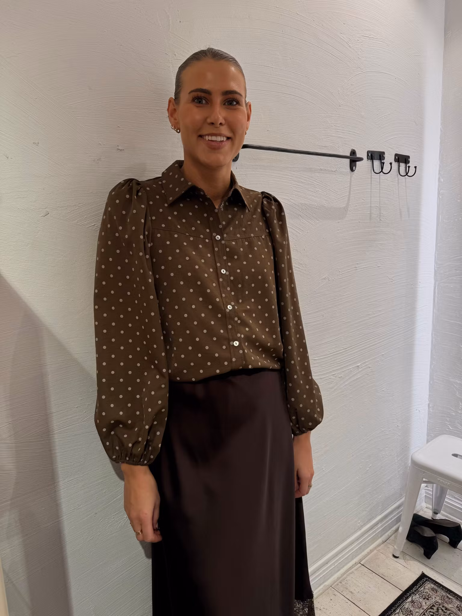 Gabriella har storlek S på sig.
