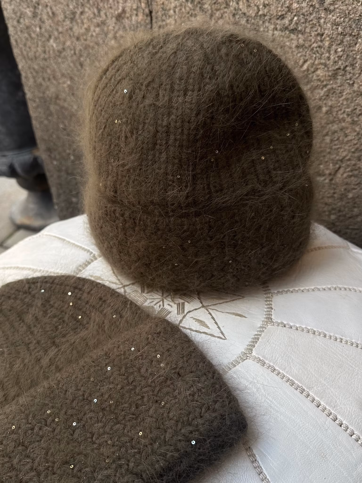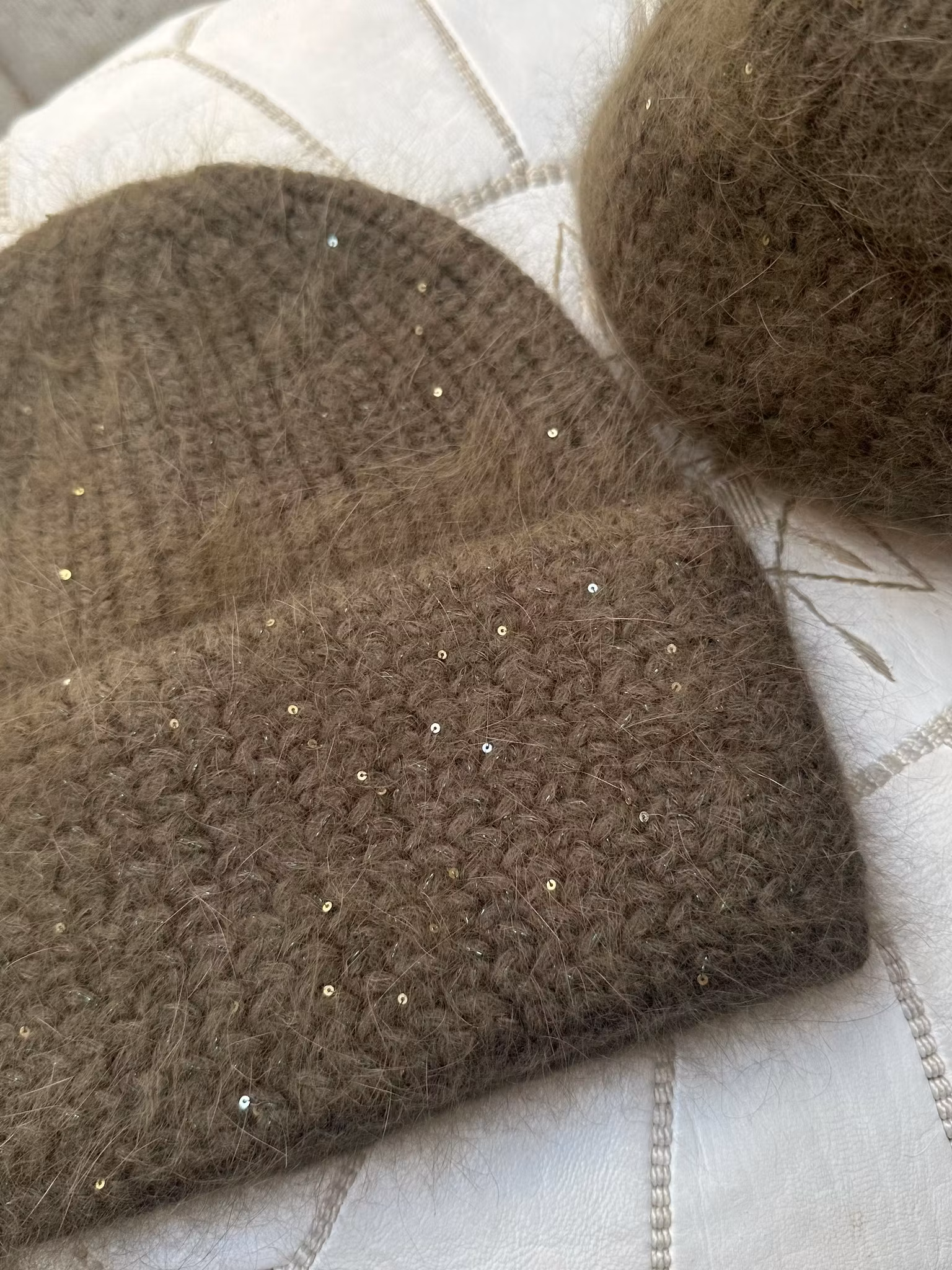 Mysig mössa med små glitterpaljetter, onesize. Ej stickig.