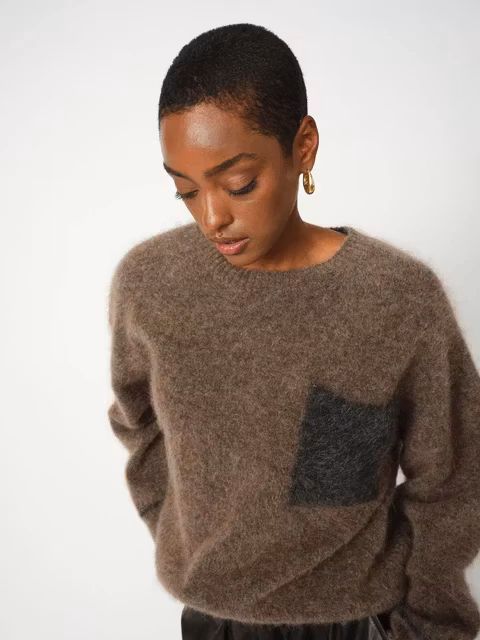 Denna mysiga stickade tröja är tillverkad med en mjuk, fluffig textur som ger en avslappnad och bekväm passform. Den klassiska O-halsen ger en tidlös charm, medan den kontrastfärgade bröstfickan ger en modern touch. Styla den med jeans eller skräddarsydda byxor för en chic men ändå avslappnad look.