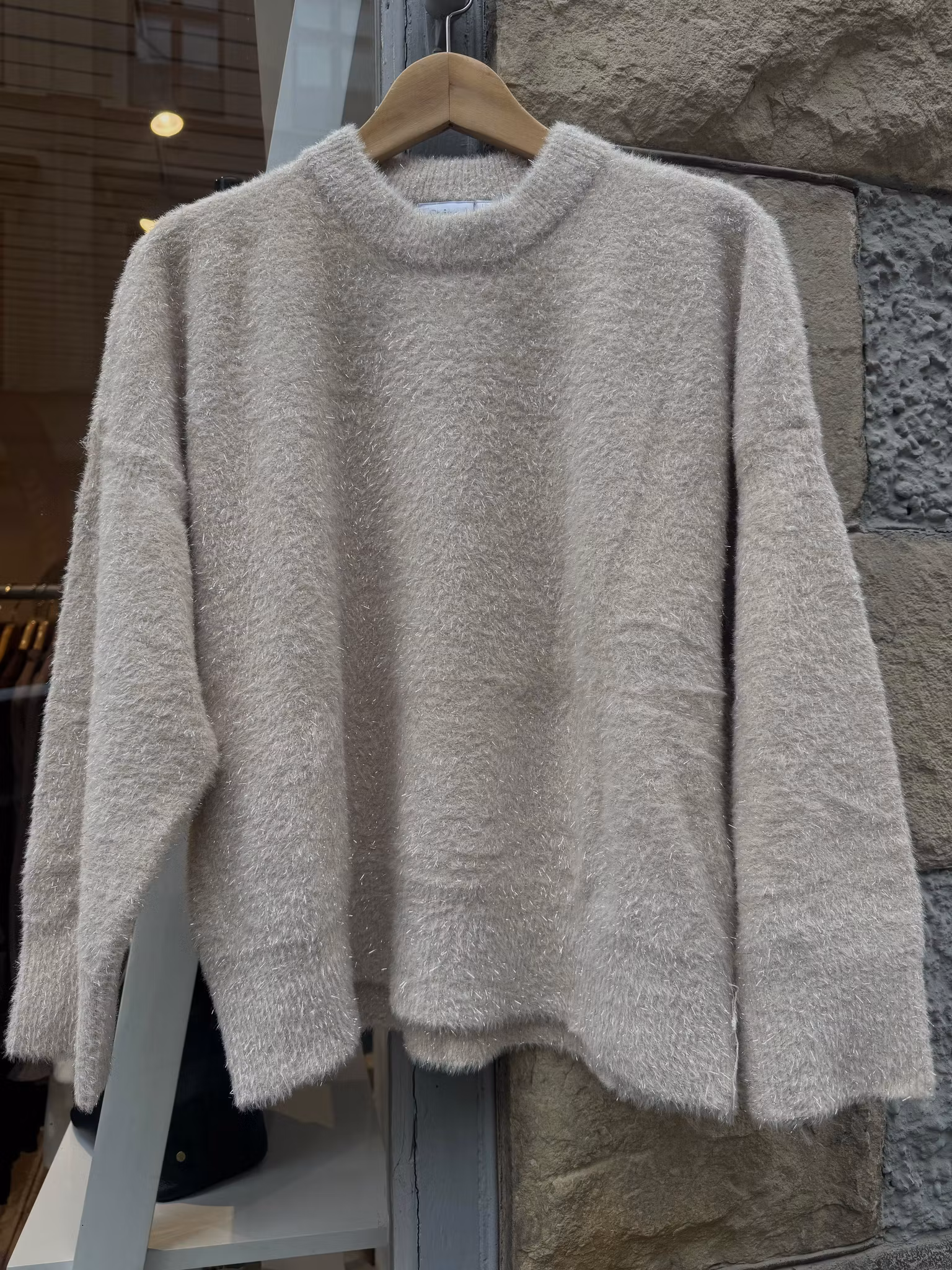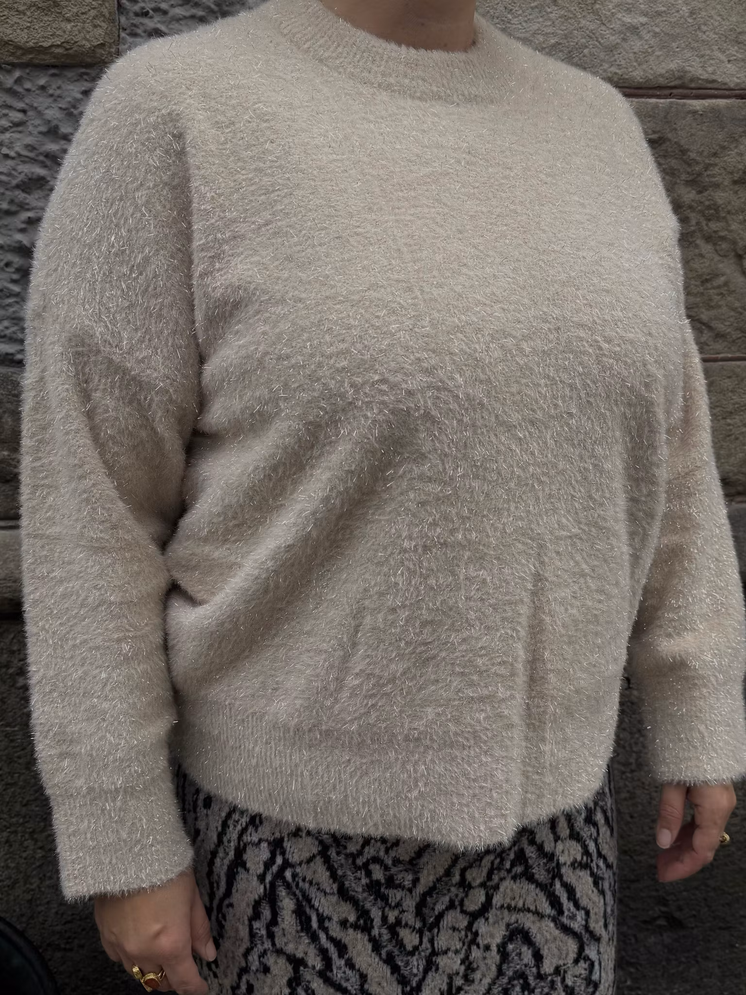 Rundhals med glittertrådar.