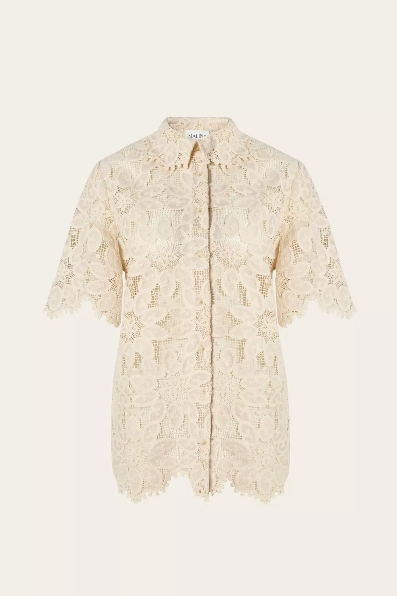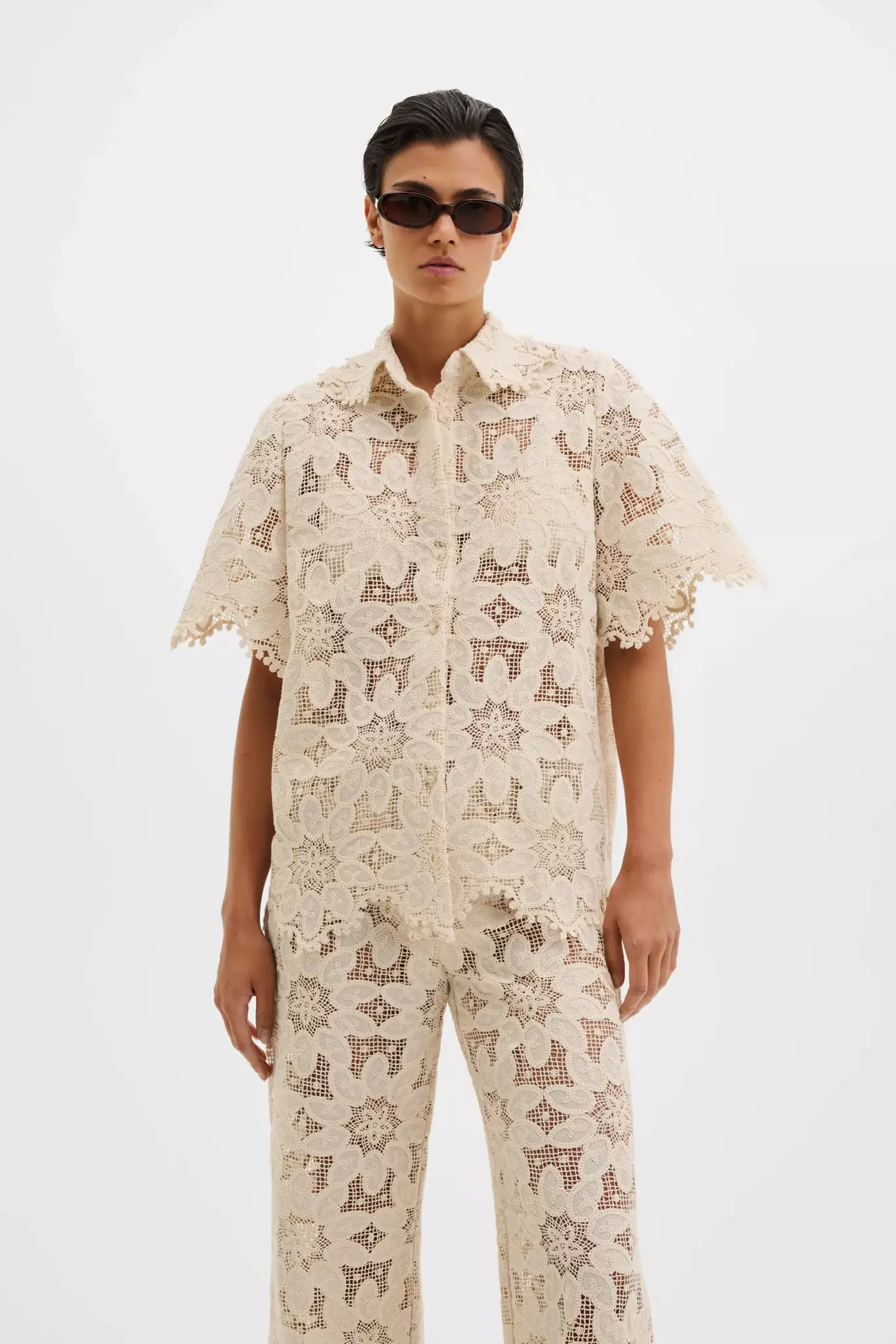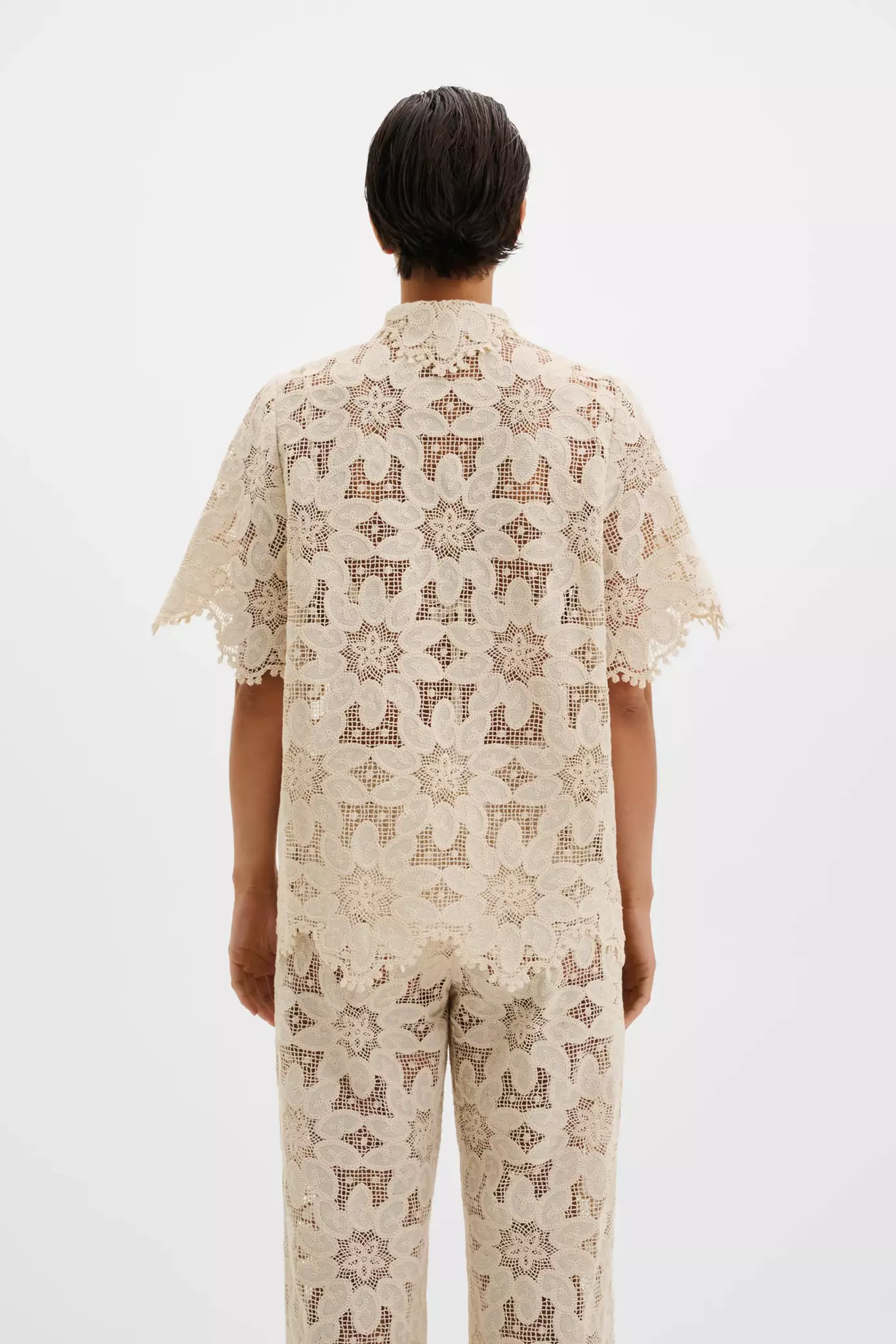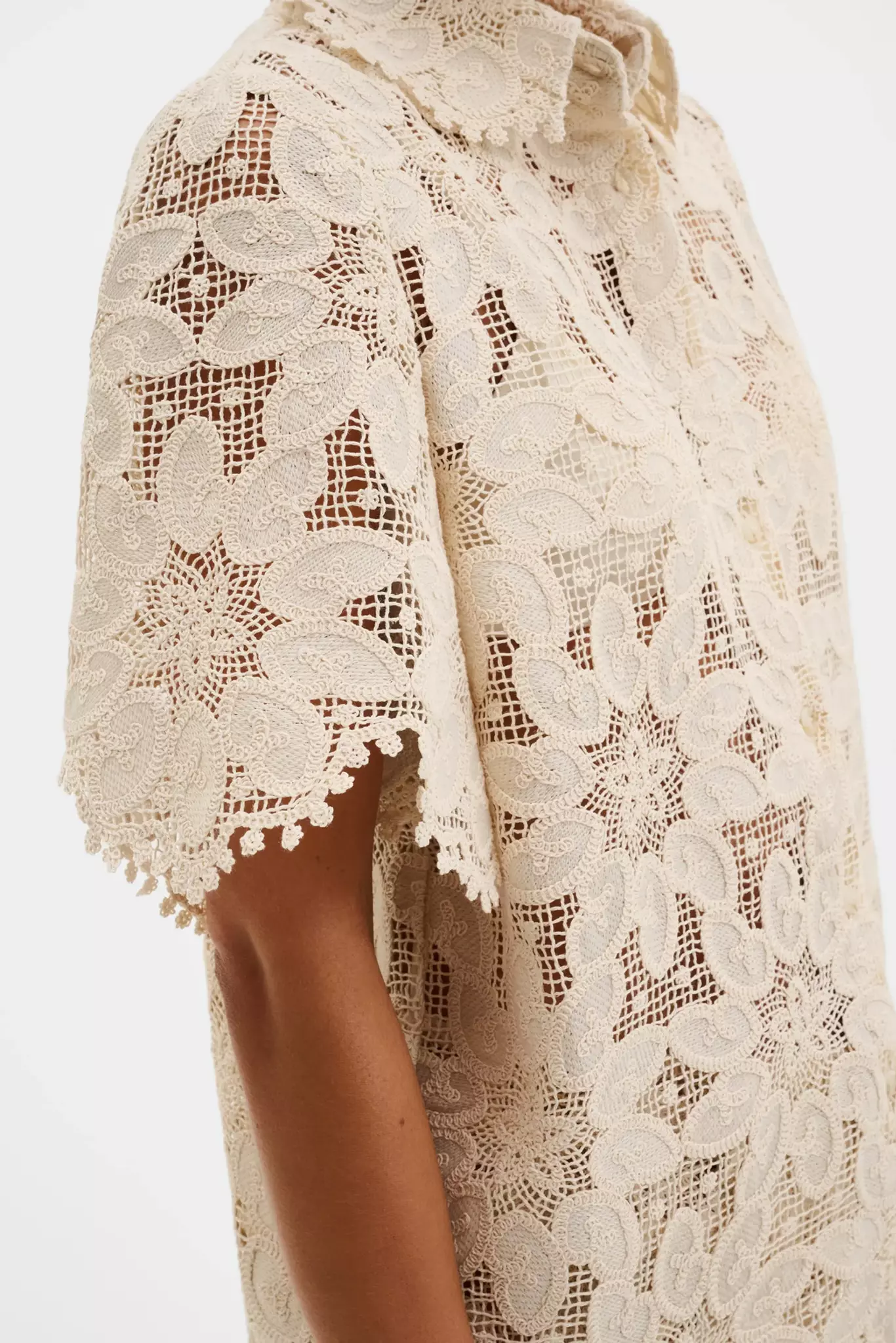 Kortärmad skjorta i gipyrspets med vågformad kant.