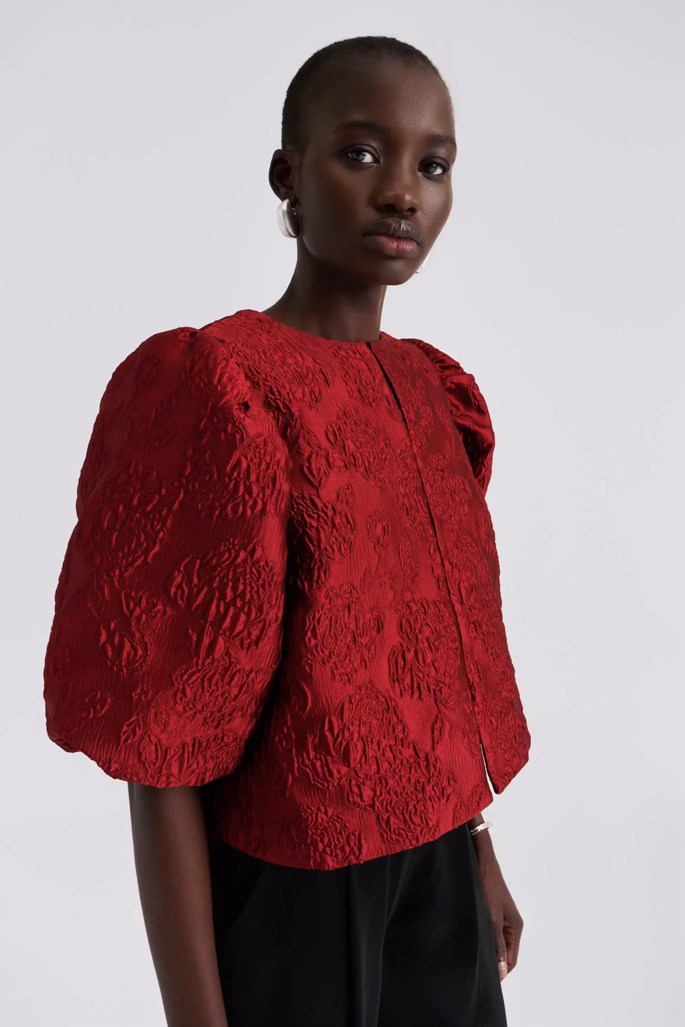 Puffig ballongfärd, bred siluett i passformen. Dolda knappar fram.