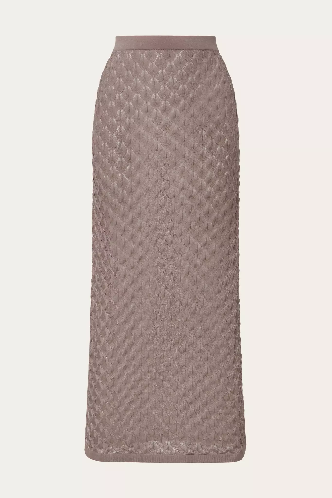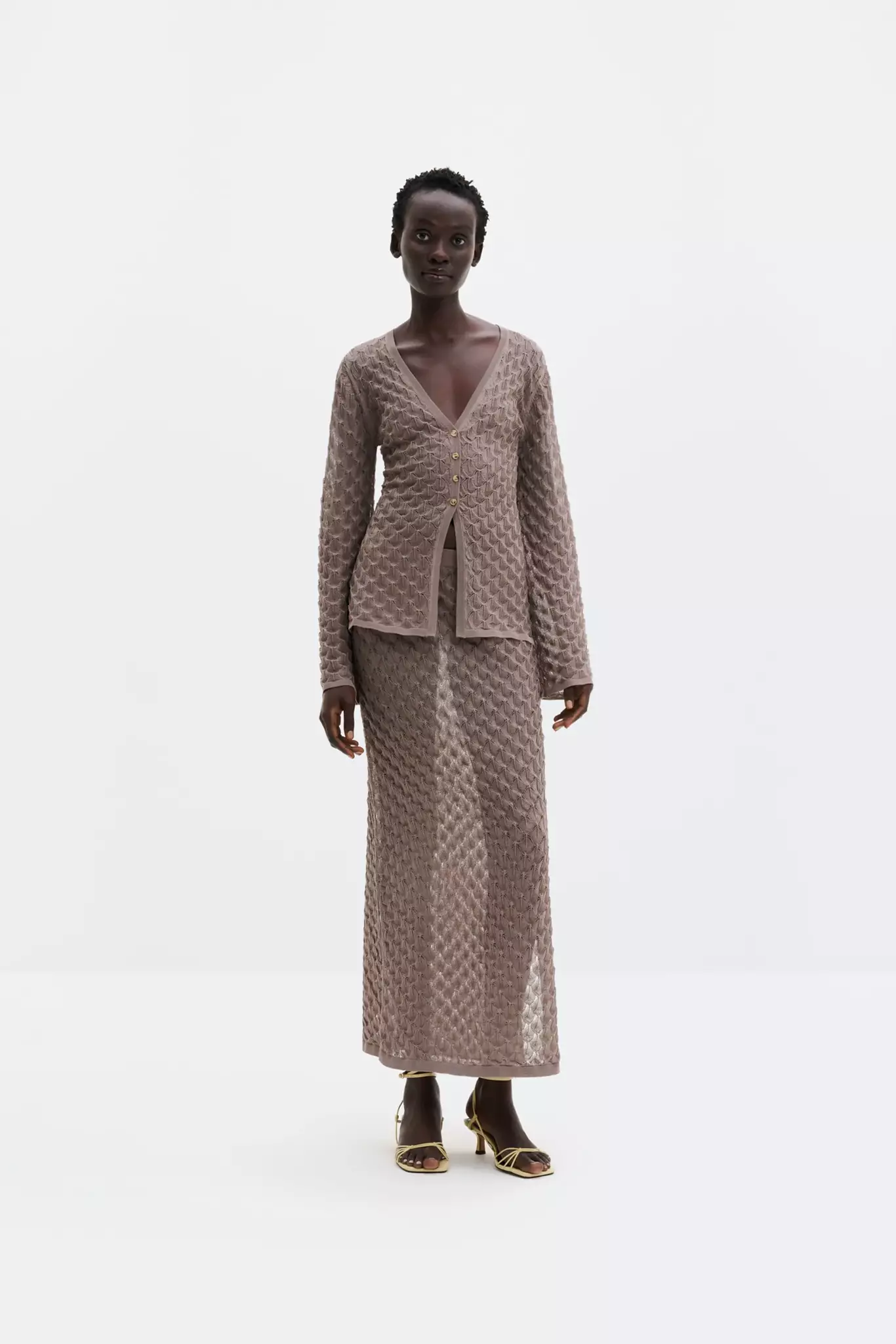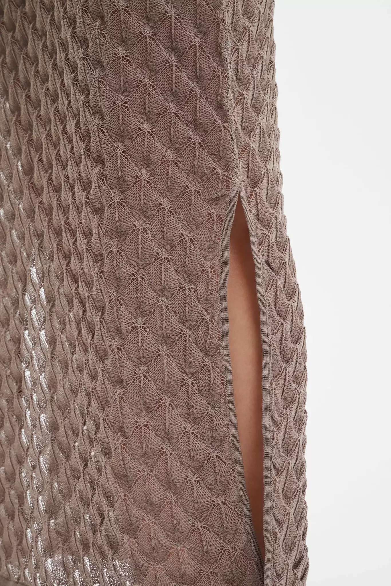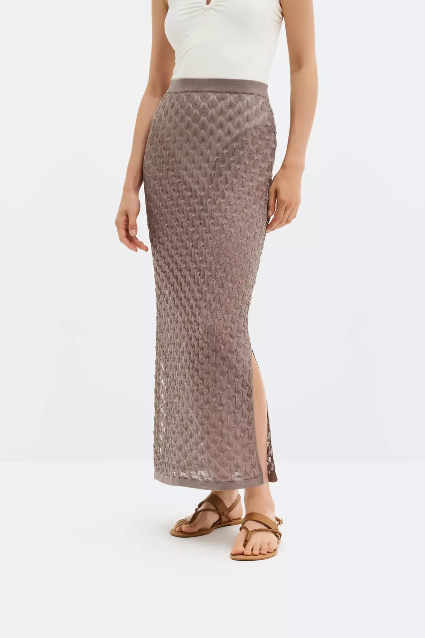 Stickad maxikjol med slits i sidan, elastisk midja och figurnära passform.