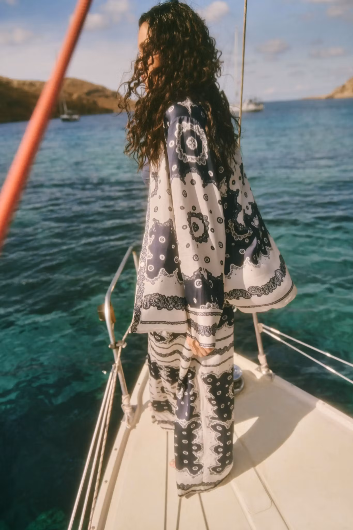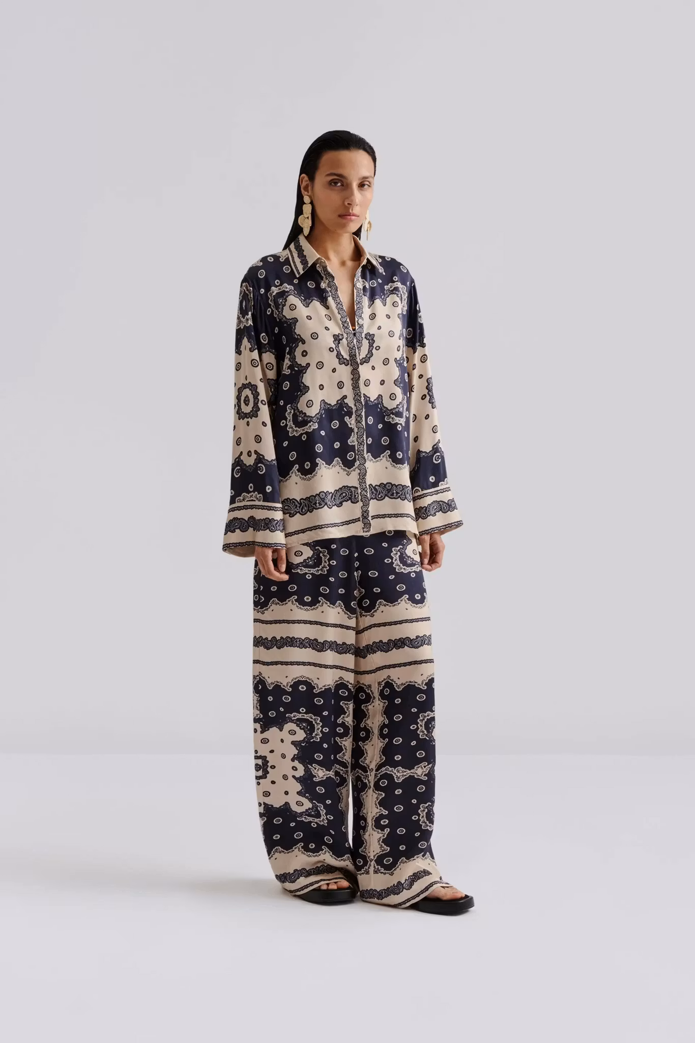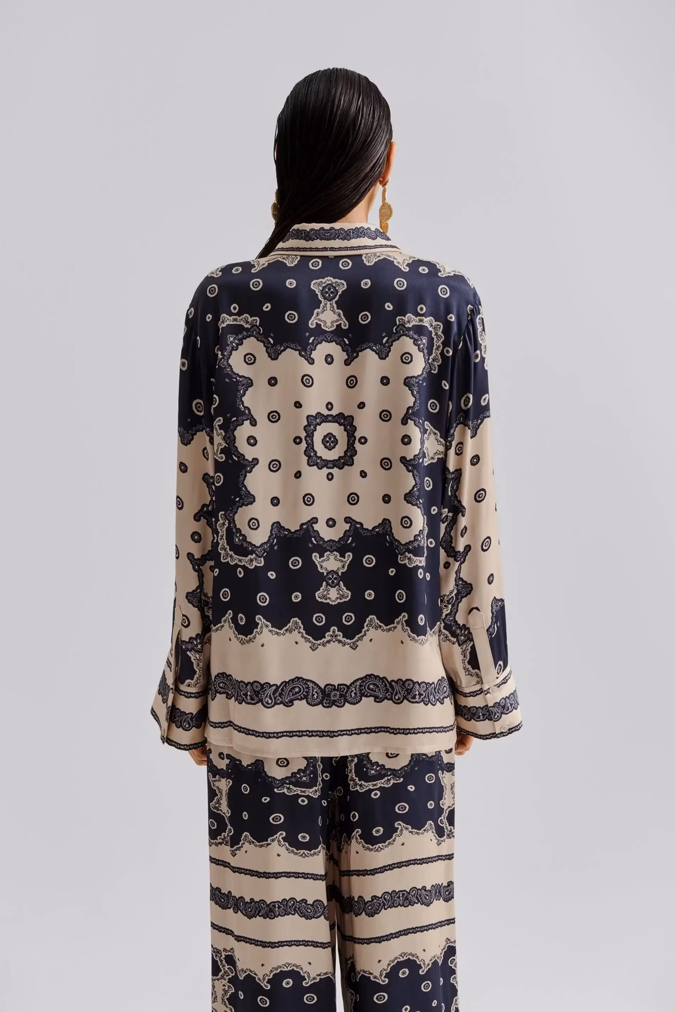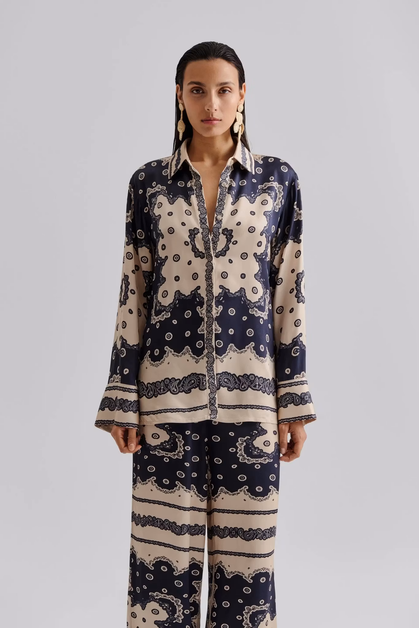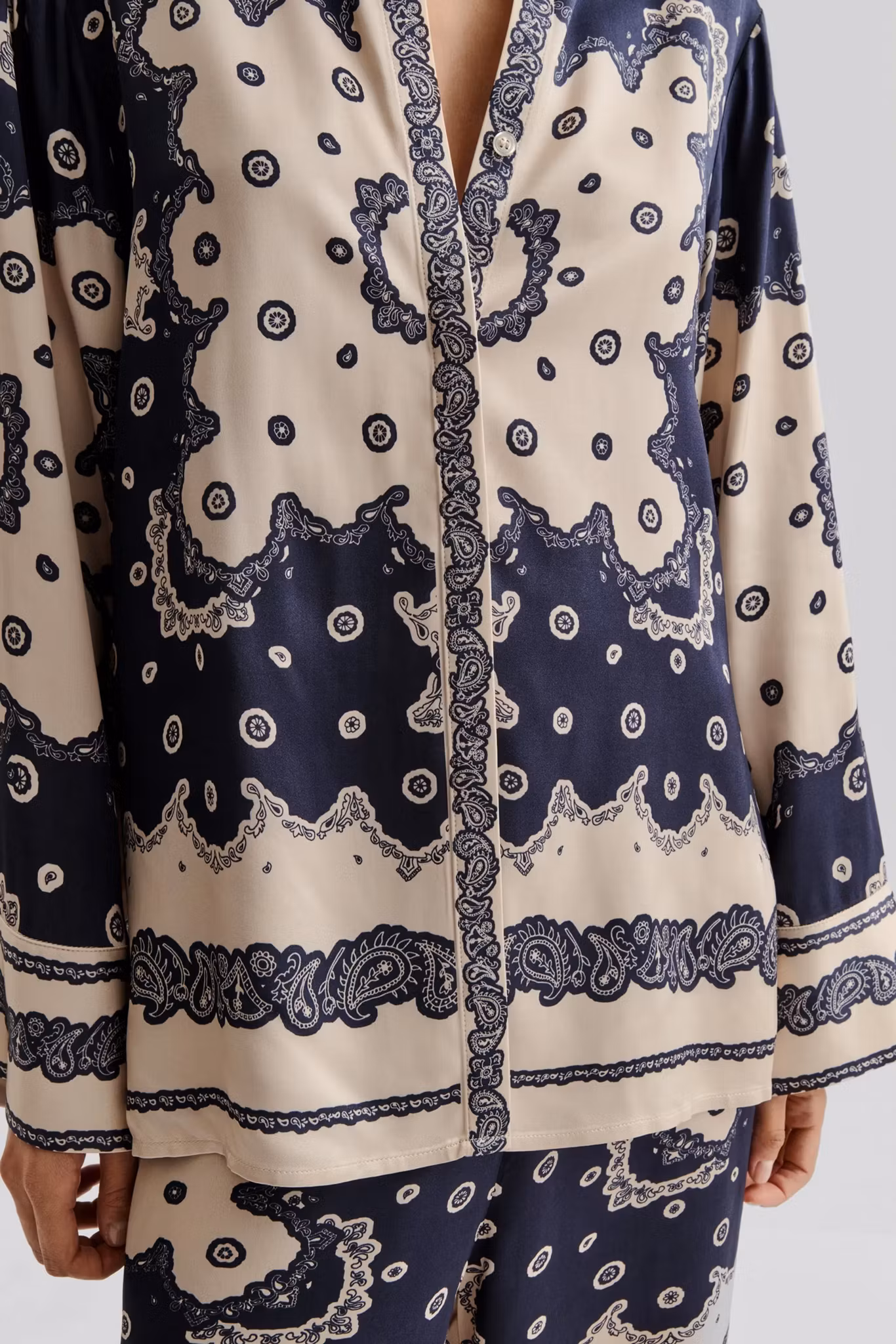 Mönstrad skjorta i vid passform med lång ärm och dolda knappar.