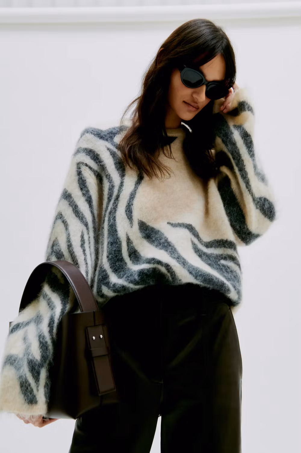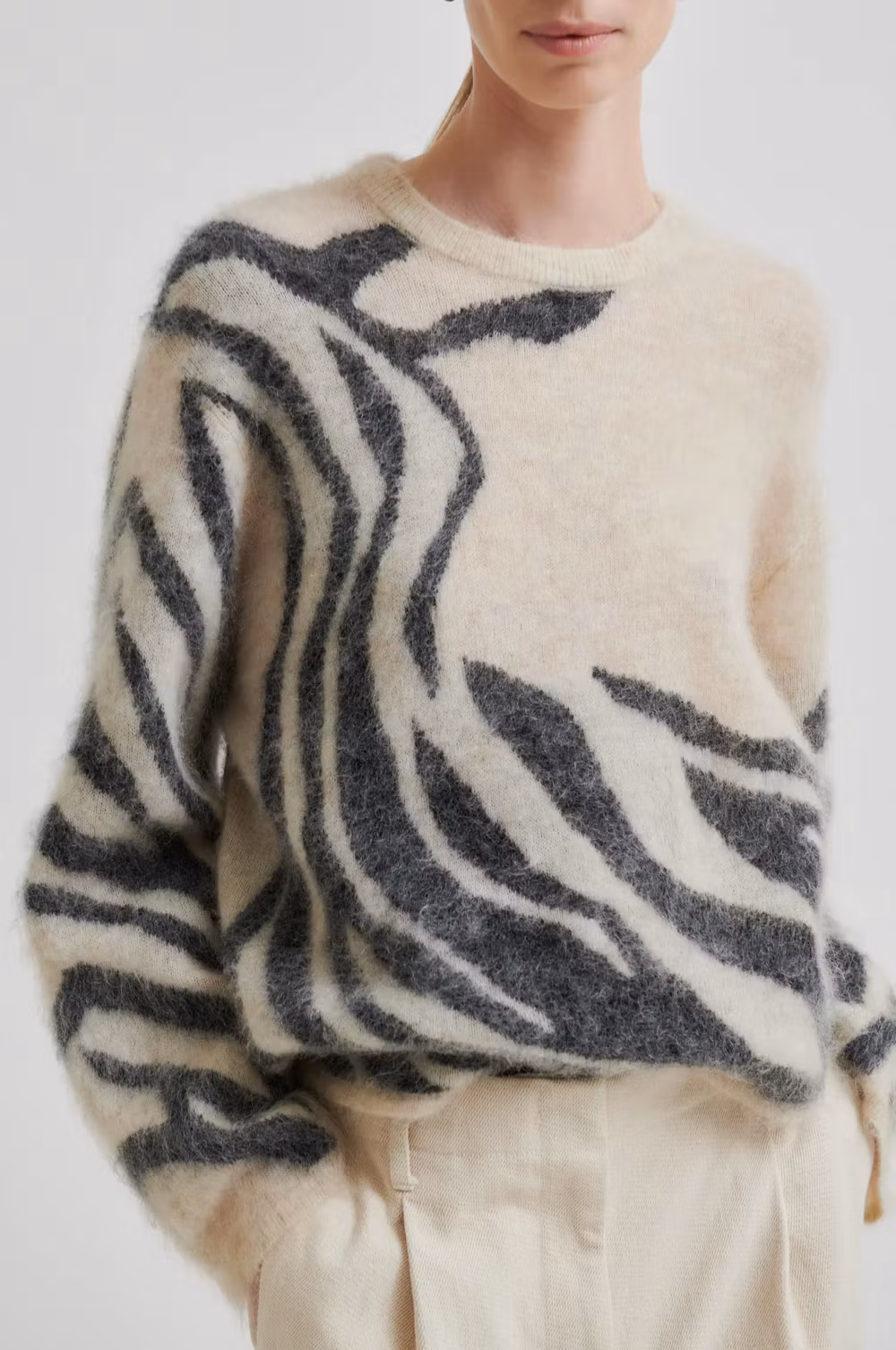 Mönstrad stickad tröja med rak modell.