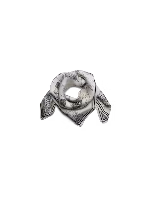 Denna vackert utformade scarf har ett unikt handritat mönster som visar ikoniska sevärdheter från hela världen, tillverkad av mjuk viskos för en lyxig känsla. Styla den enkelt runt din hals med skräddarsydda plagg eller knyt den till din väska för en chic och feminin touch. En mångsidig accessoar som tillför karaktär och elegans till varje outfit.