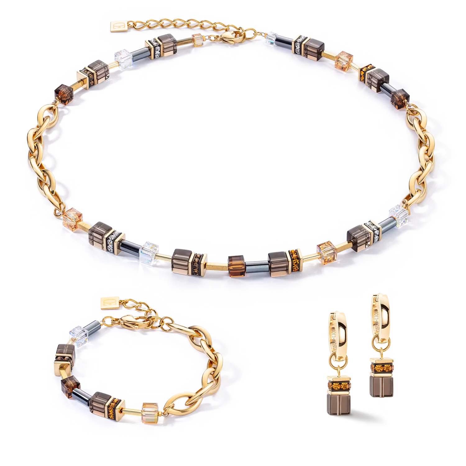Smoky quartzSwarovski® CrystalsRhinestone rondellesHaematiteStainless steel gold