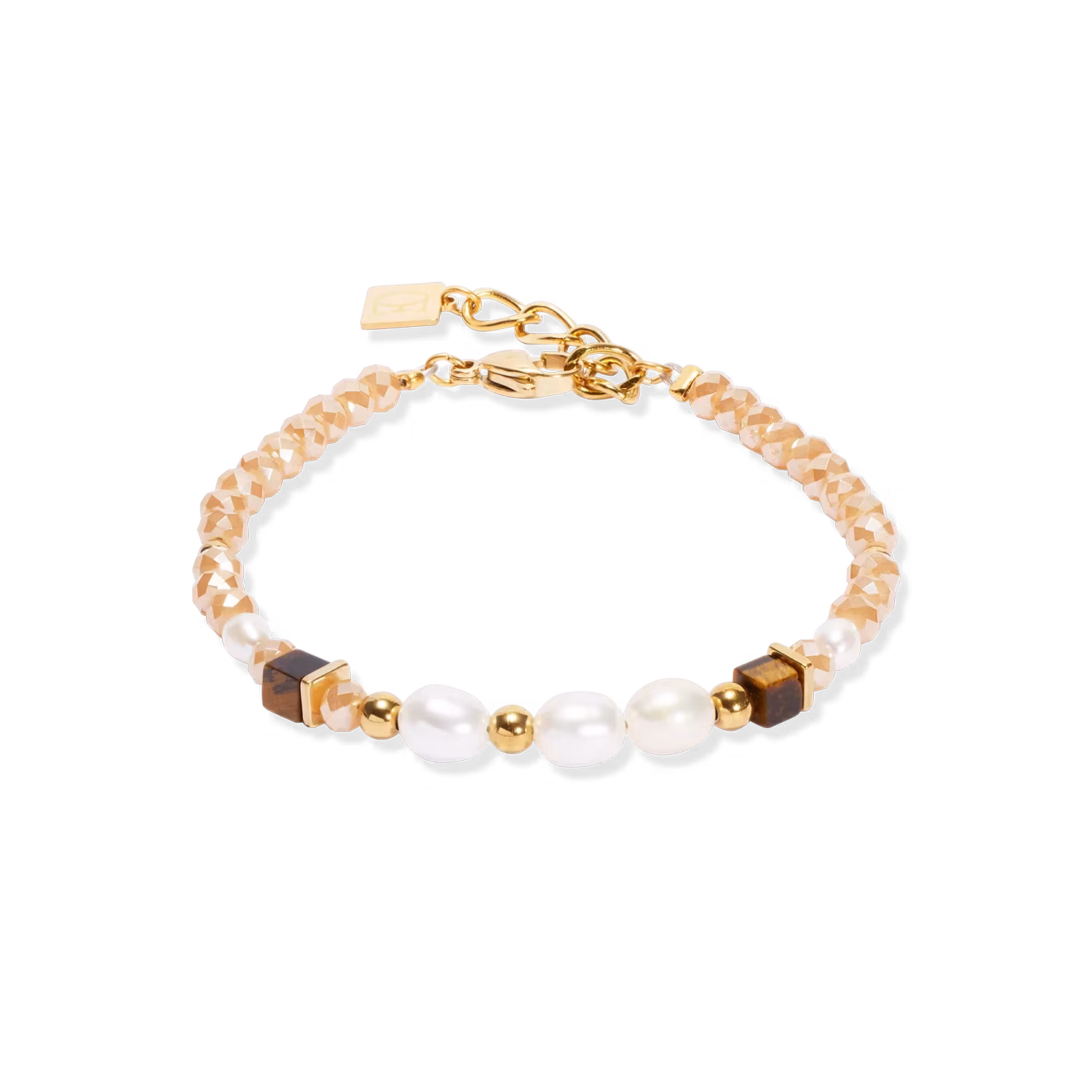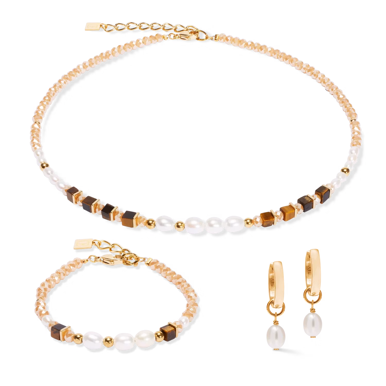 SötvattenspärlaTigerögaSlipat glasRostfritt stål, guld