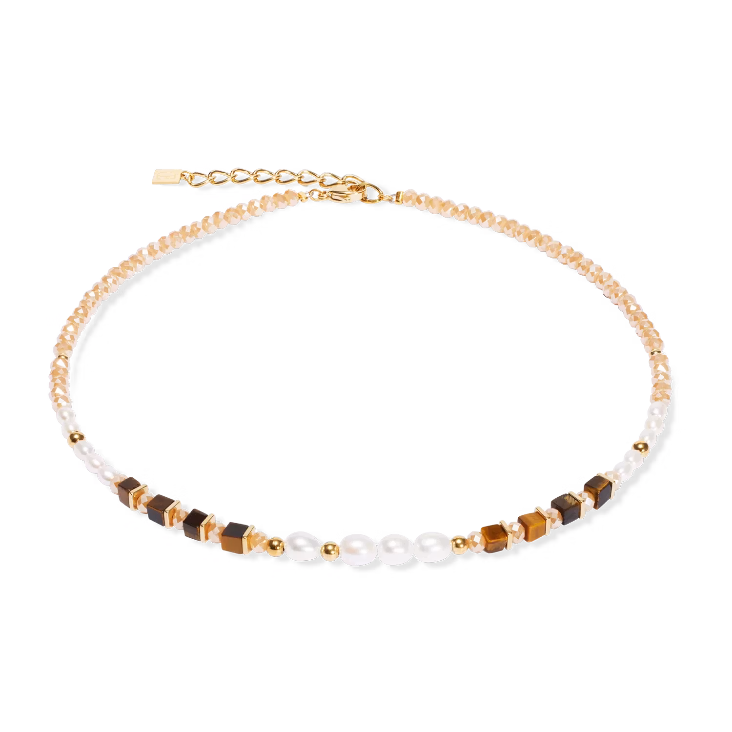 SötvattenspärlaTigerögaSlipat glasRostfritt stål, guld
