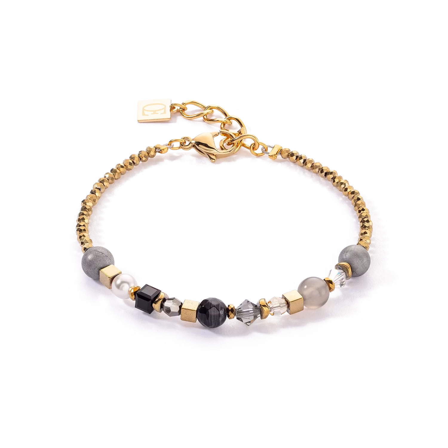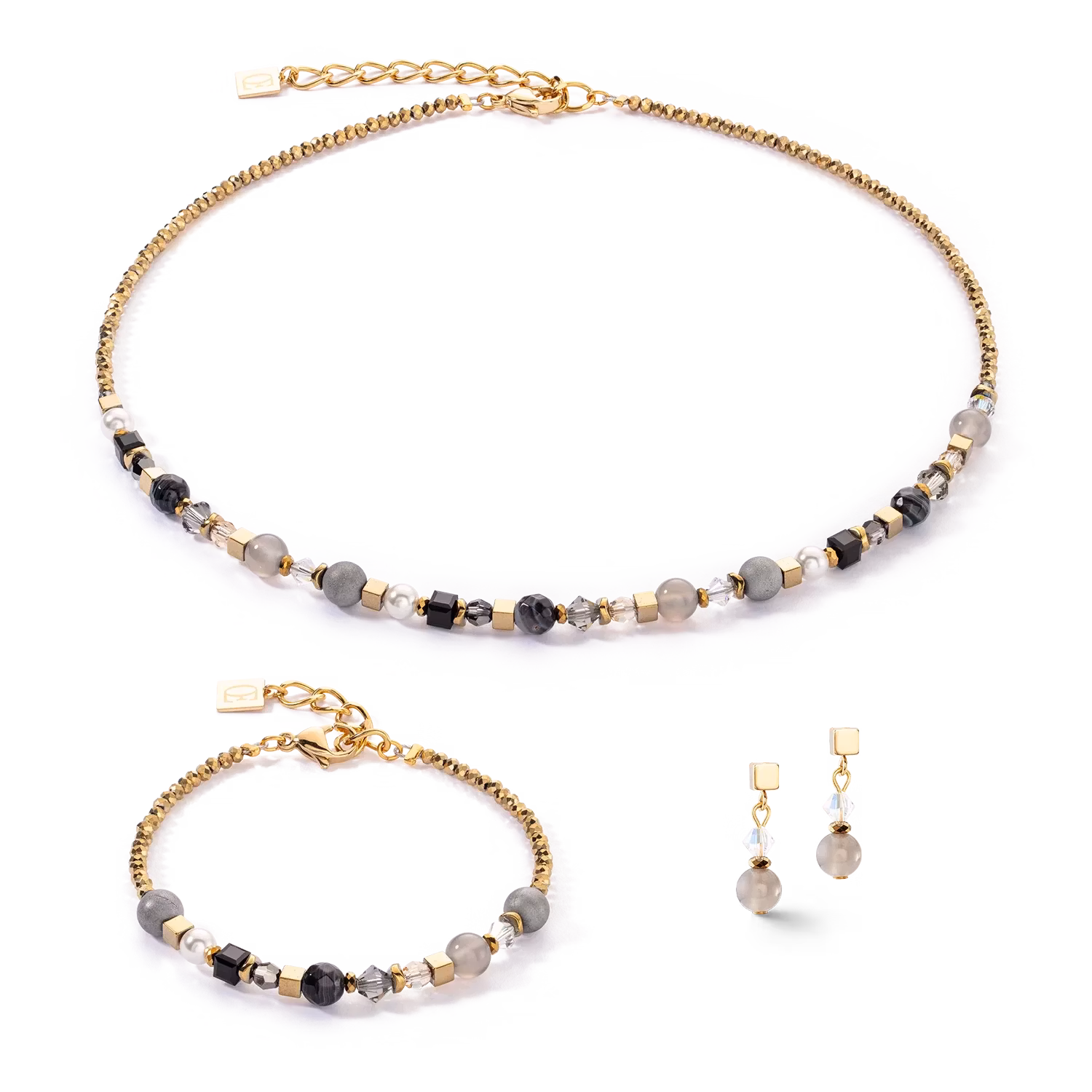 Randig onyxAgatJoniserad agat med kvartsdrusKristallpärlor från Swarovski®Swarovski®-kristallerHematit med titanoxidbehandlingSlipat glas