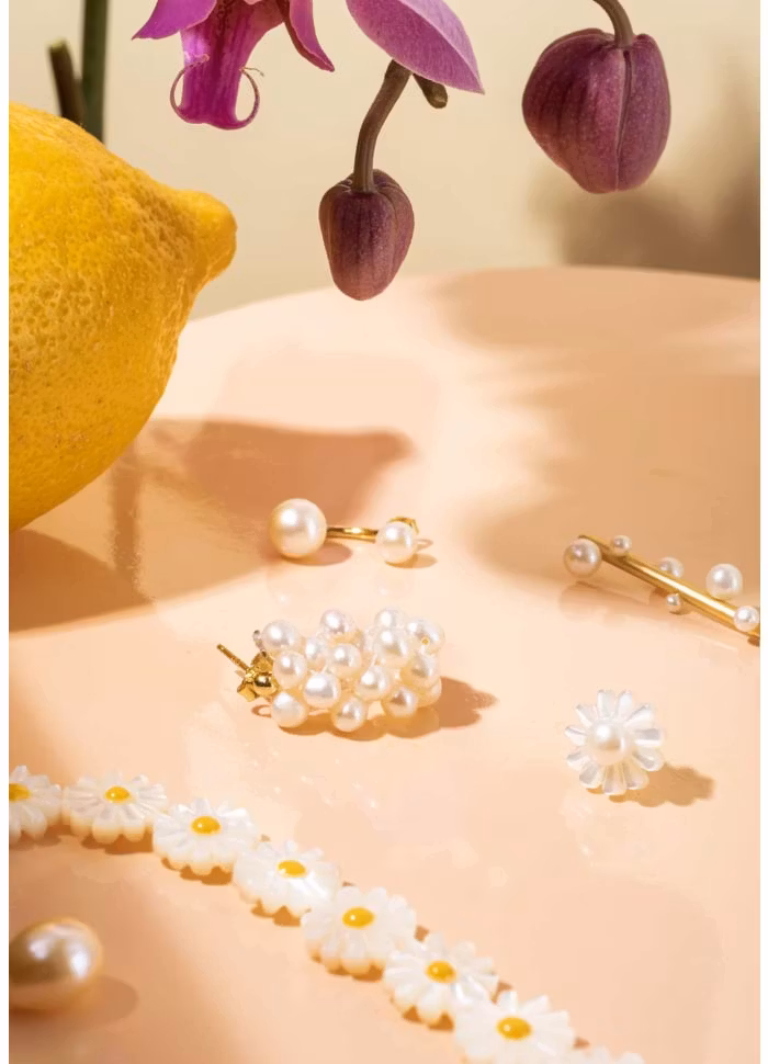 Återvunnen 925 sterlingsilver, 18k guldplätering, äkta sötvattenspärlor.