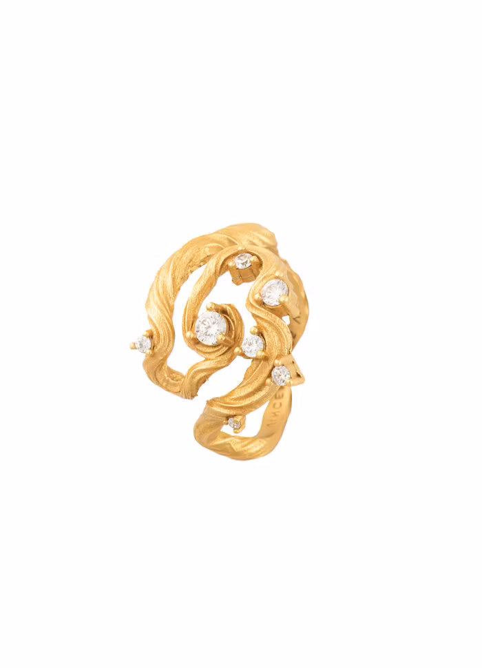 Återvunnen 925 sterling silver, 18k guldplätering, nano kristaller.