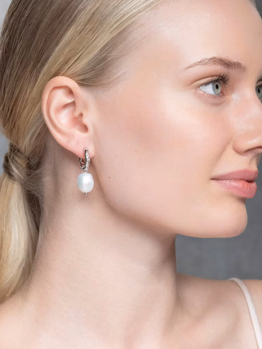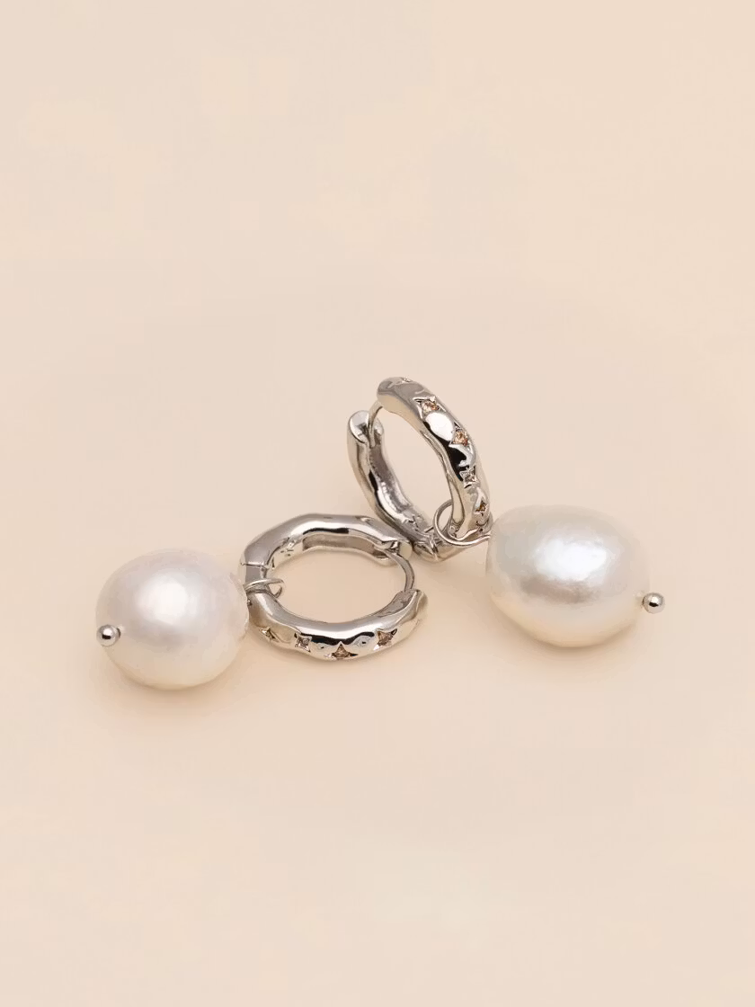 These silver-plated, moulded hoop earrings effortlessly transform, offering you two divine styles. Delicately suspended like a moonlit droplet is a baroque pearl, it is easily detachable for a more simple look that radiates everday sophistication.