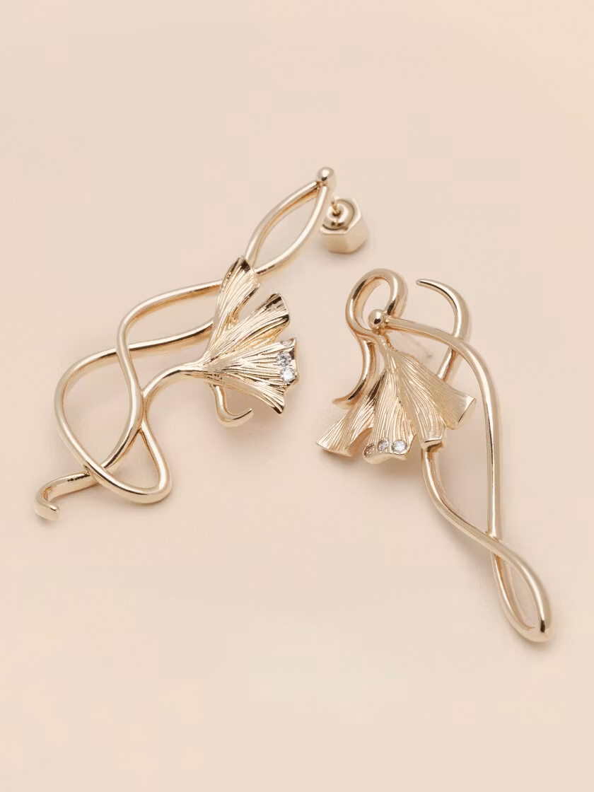 Our largest earrings yet. Completely unique in its kind, with an asymmetric design. This makes the earrings feel like a piece of art. Our signature earrings symbolize what the spring and summer collection stands for. A botanical dream with genuine craftsmanship in every branch and petal.