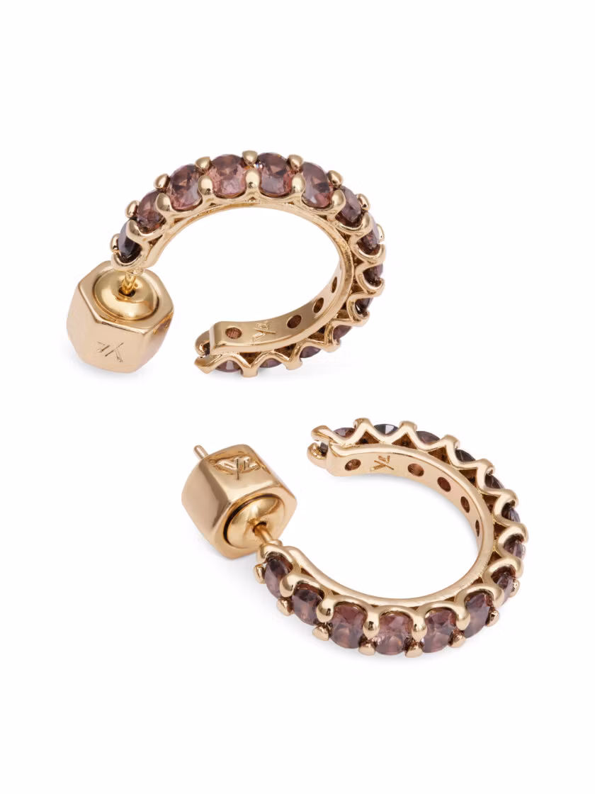 Instantly eye-catching, these stunning hoop earrings with a combination of brown coloured princess-cut oval stones and round cubics, inlaid in claws of 18k plated gold can be dressed up or down.