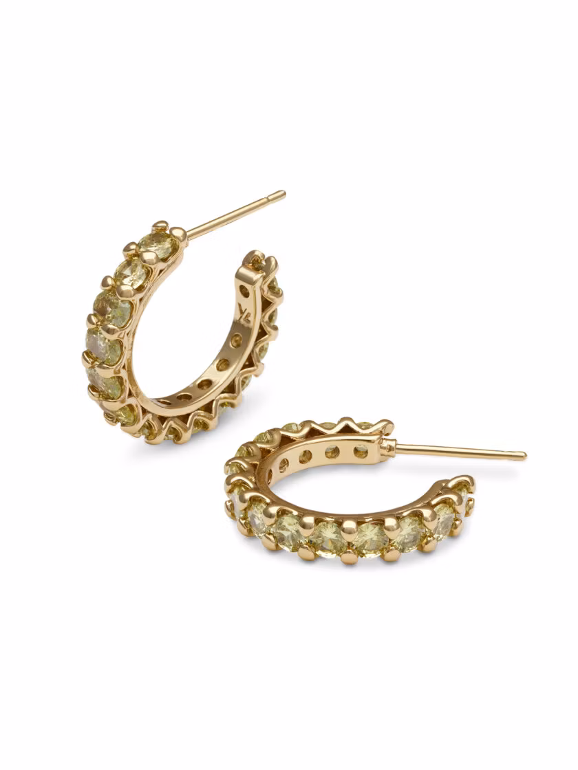 Instantly eye-catching, these stunning hoop earrings with a combination of brown coloured princess-cut oval stones and round cubics, inlaid in claws of 18k plated gold can be dressed up or down.